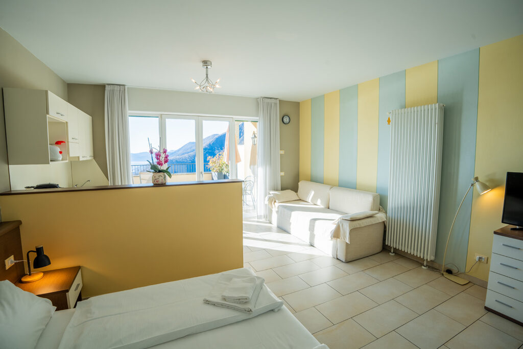 Delizioso monolocale con terrazza privata che si apre sul magnifico paesaggio lacustre del Lago Maggiore. L’ambiente è luminoso e ben distribuito, con angolo cottura funzionale e tutte le dotazioni necessarie per una vacanza o un soggiorno extended confortevole e sereno.