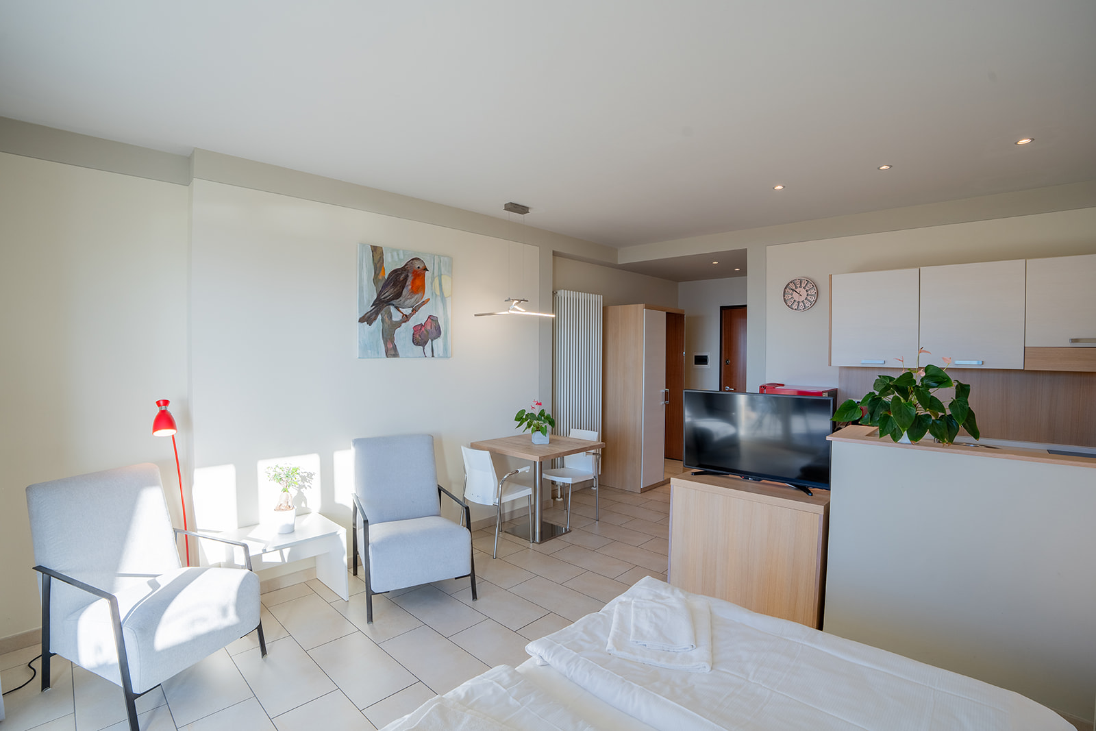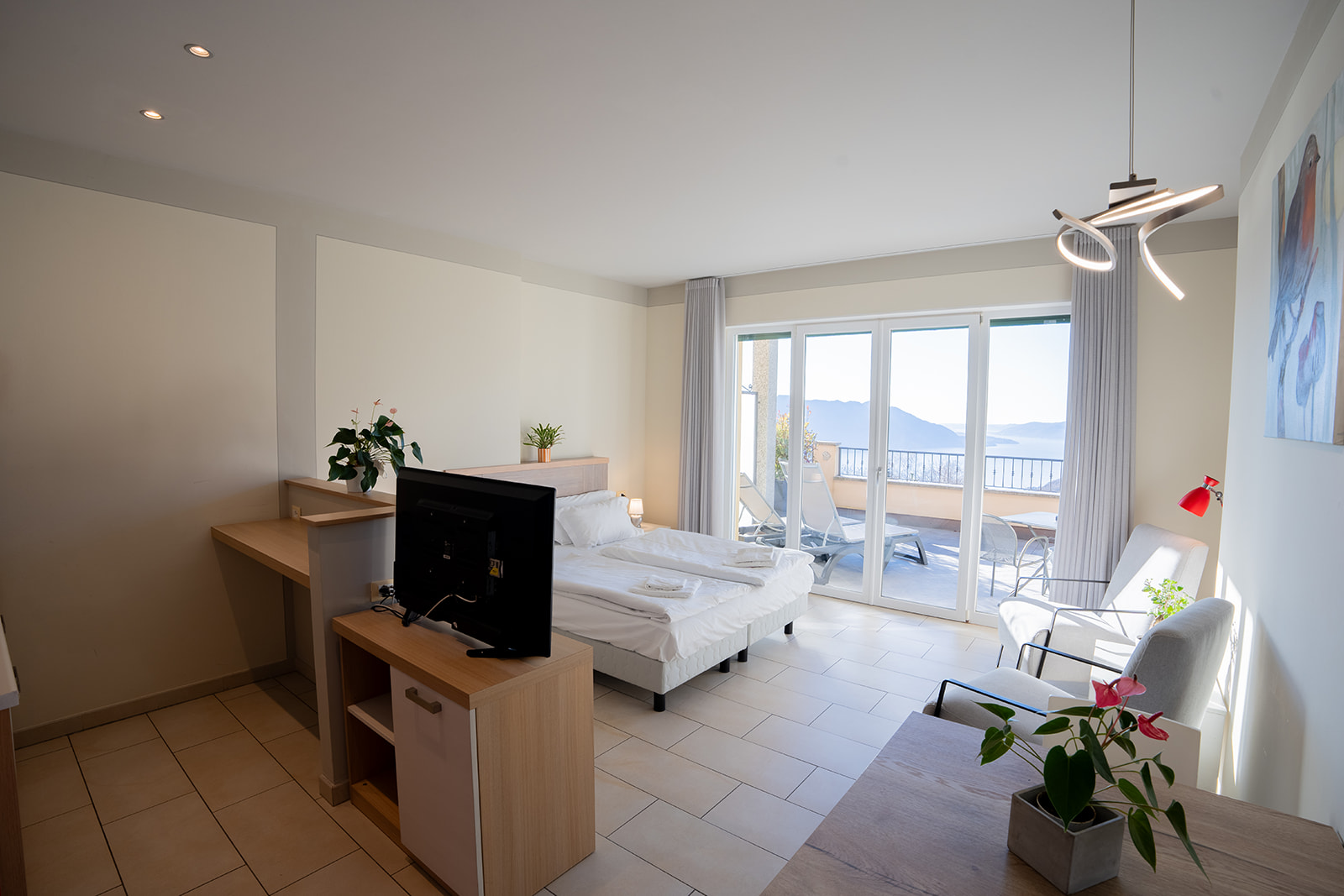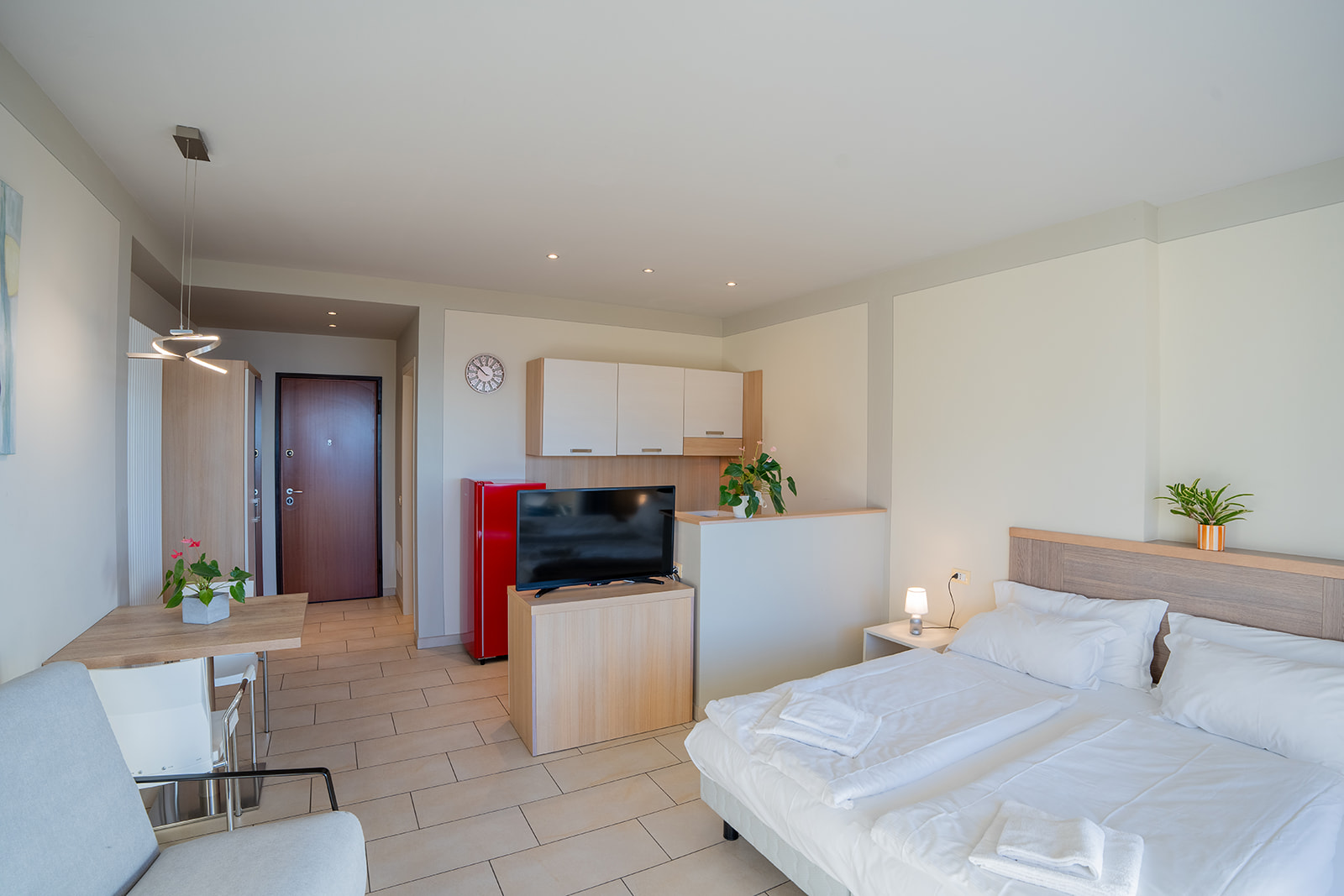 Monolocale elegante con terrazza privata fronte lago che regala tramonti indimenticabili sul Lago Maggiore. Arredamento essenziale ma curato, con angolo cottura e tutti i servizi moderni per un soggiorno confortevole e indipendente. Perfetto per chi ama la natura e le viste panoramiche.
