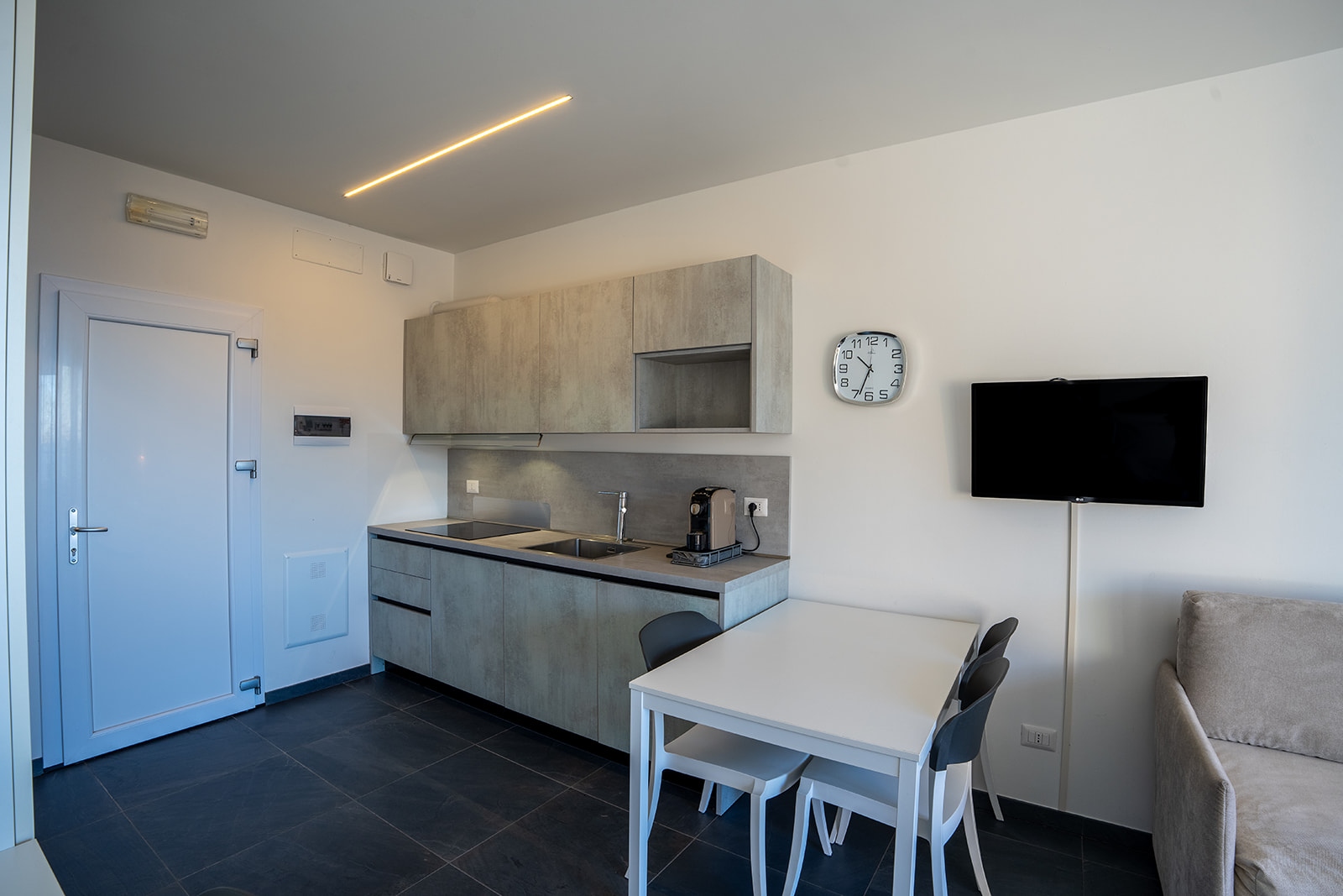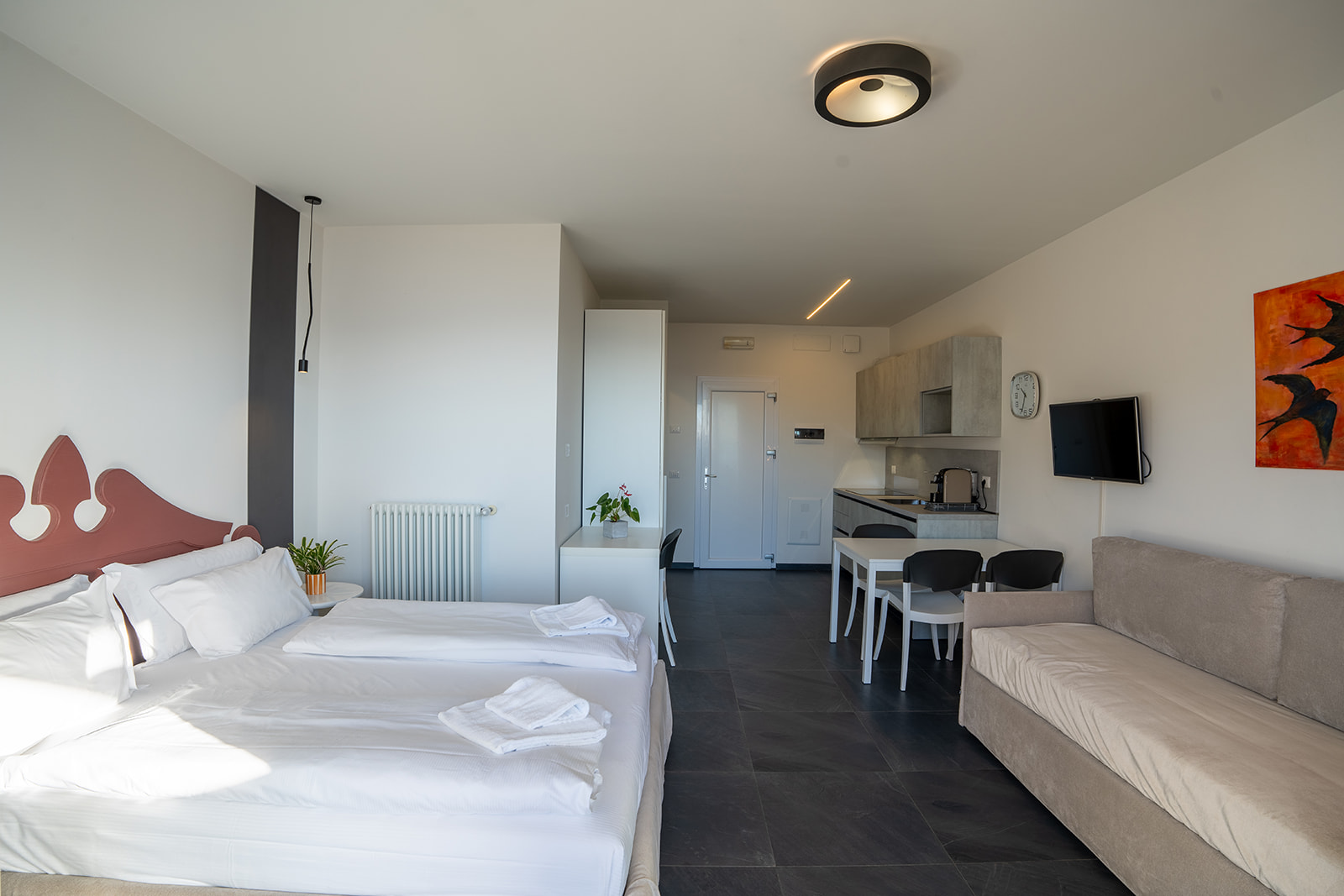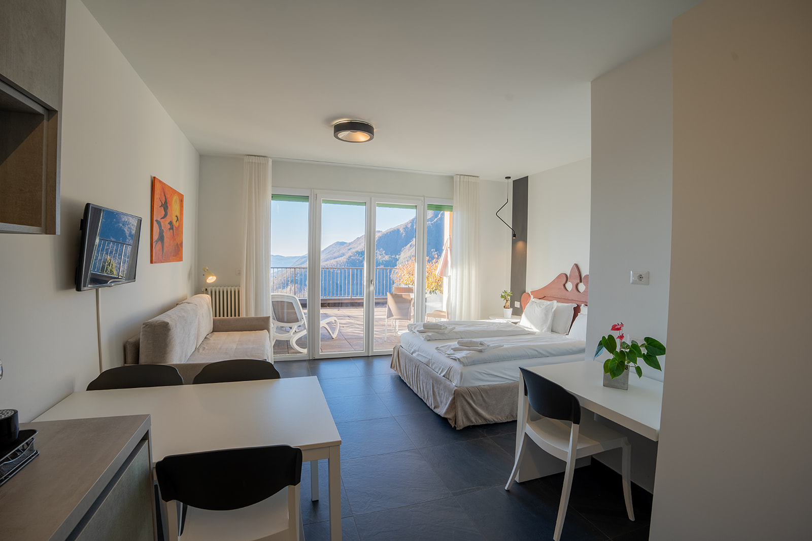 Raffinato monolocale con terrazza privata che si affaccia sul suggestivo panorama lacustre, ideale per chi ricerca tranquillità e una pausa dalla quotidianità . Spazi ben organizzati con angolo cottura funzionale, dotato di tutti i comfort essenziali e connessione WiFi per restare collegati se necessario.